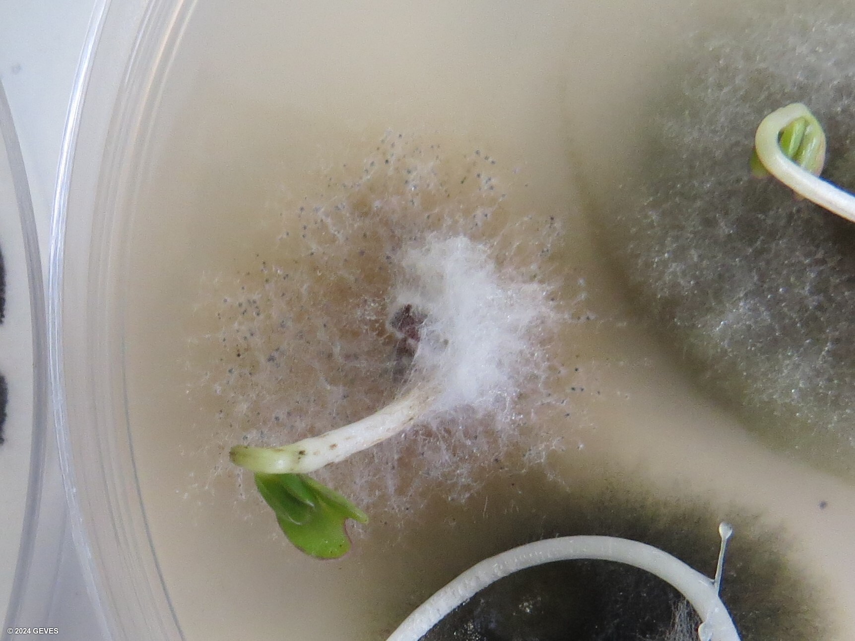 1st Figure: Aspect of Leptosphaeria spp. colony, 2nd: Pycnidia at 7d on media, silver brownish white mycelium with first pycnidia formation