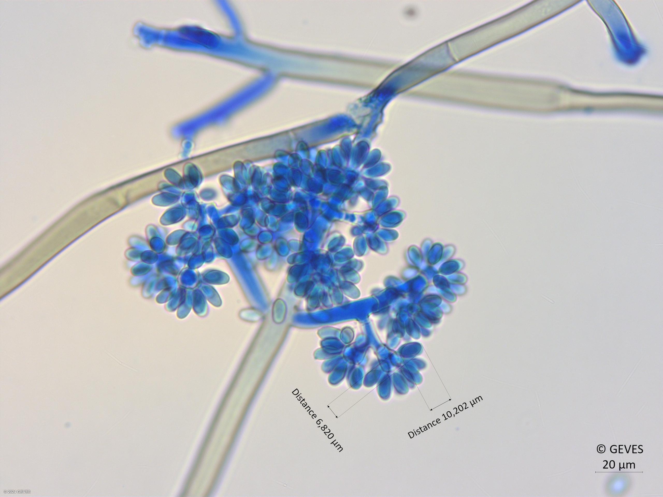 1) Isolated conidiophores of Botrytis cinerea 2) Conidiophores and conidia of Botrytis cinerea
