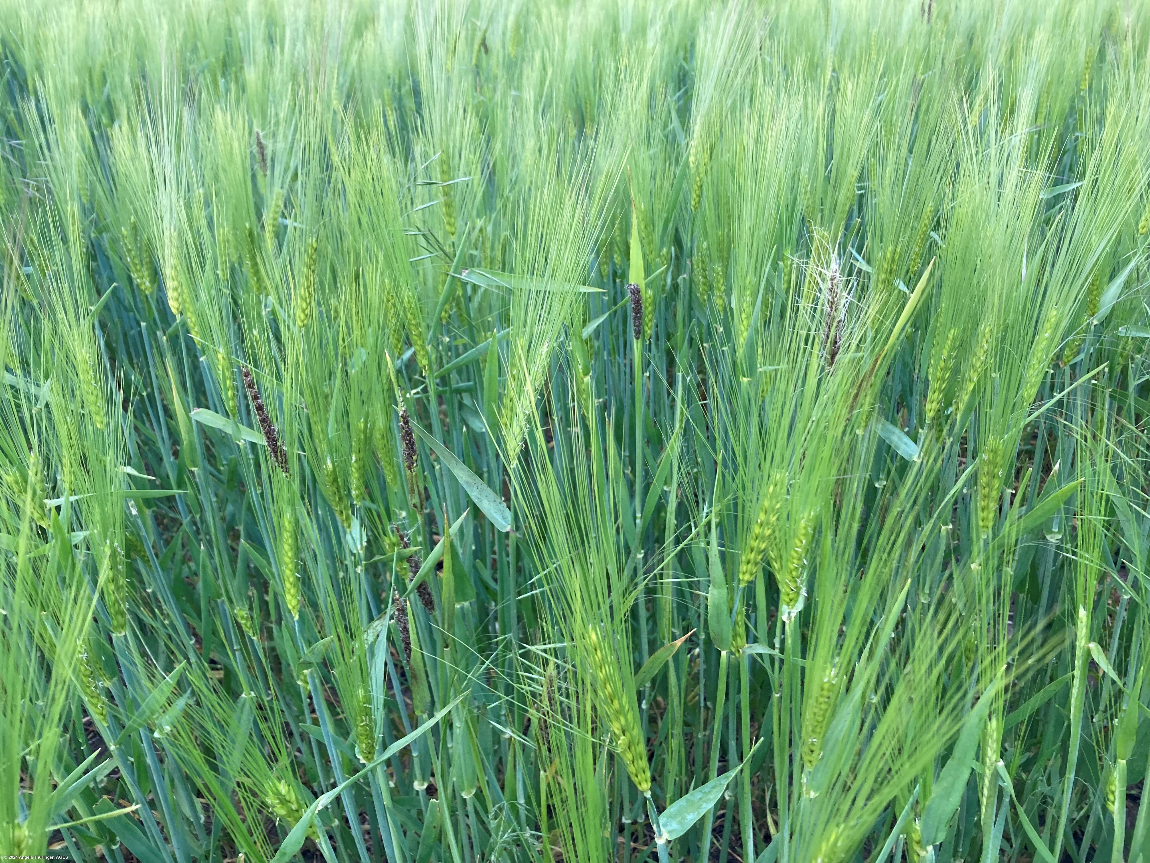 This images show infected ears with loose smut (Ustilago nuda) on barley on the field.