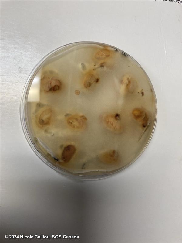 Sclerotinia on cranberry bean. showing limited white tufted mycelium and hard black sclerotia
