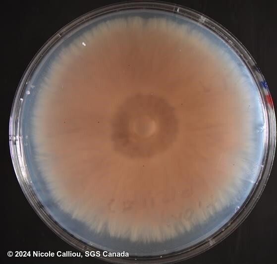 Isolate of Fusarium oxysporum received from AAFC, extremely pionnotal. And the first subculture from that isolate showing significantly more mycelium when grown in our incubation chamber.