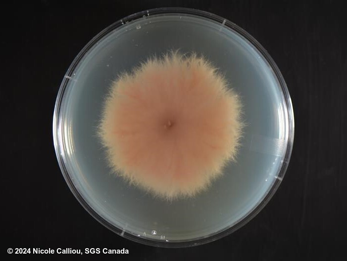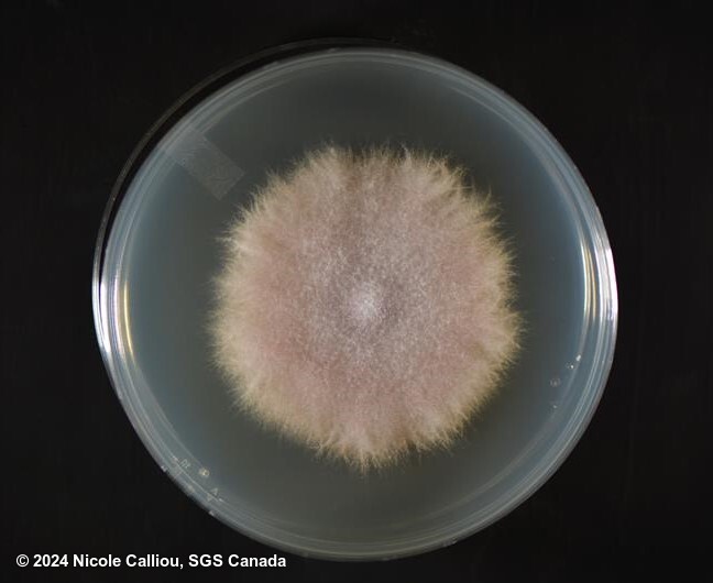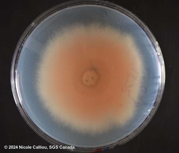 Isolate of Fusarium oxysporum received from AAFC. And the first subculture from that isolate showing feathered colony edges, when grown in our incubation chamber.